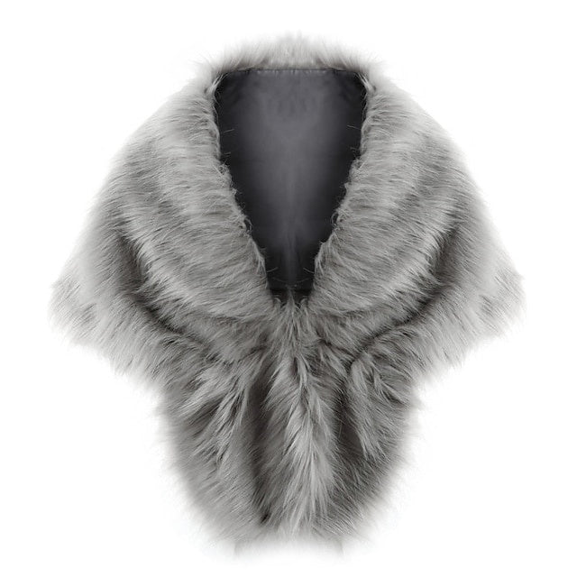 Women's Wrap Warm White Faux Fur Elegant Shawl