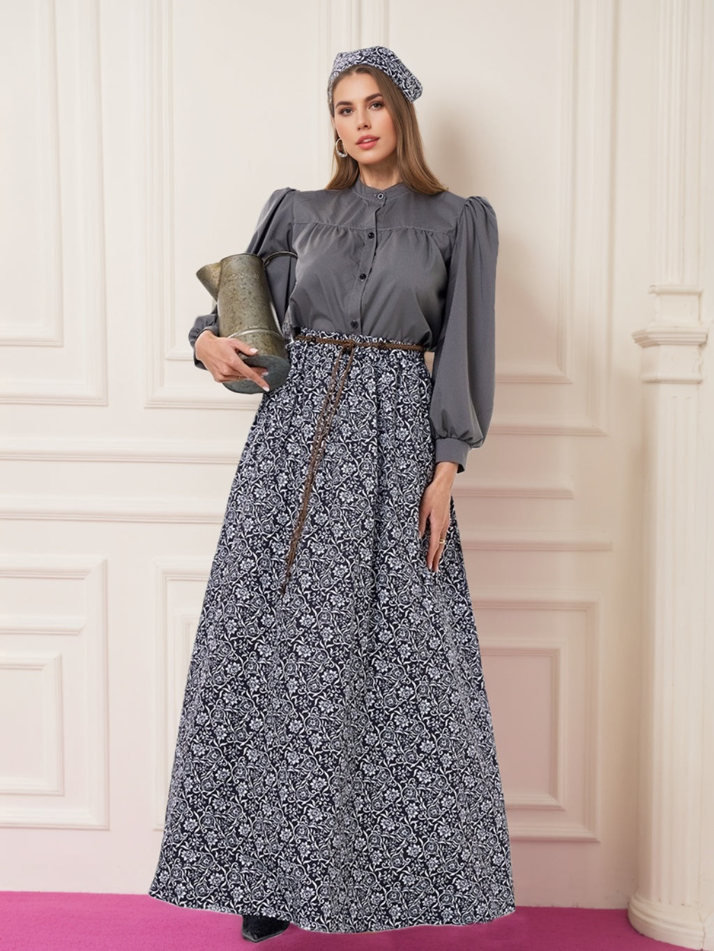 #N6041314W A-Line/Princess Jewel Neck Long Sleeves Floor-Length Retro Vintage Victorian Medieval Irish Peasant Dress