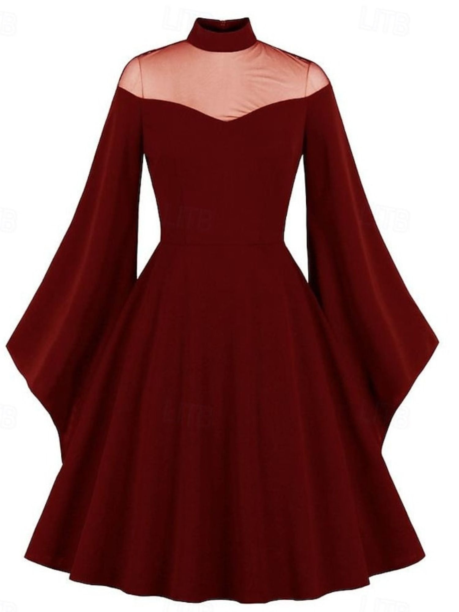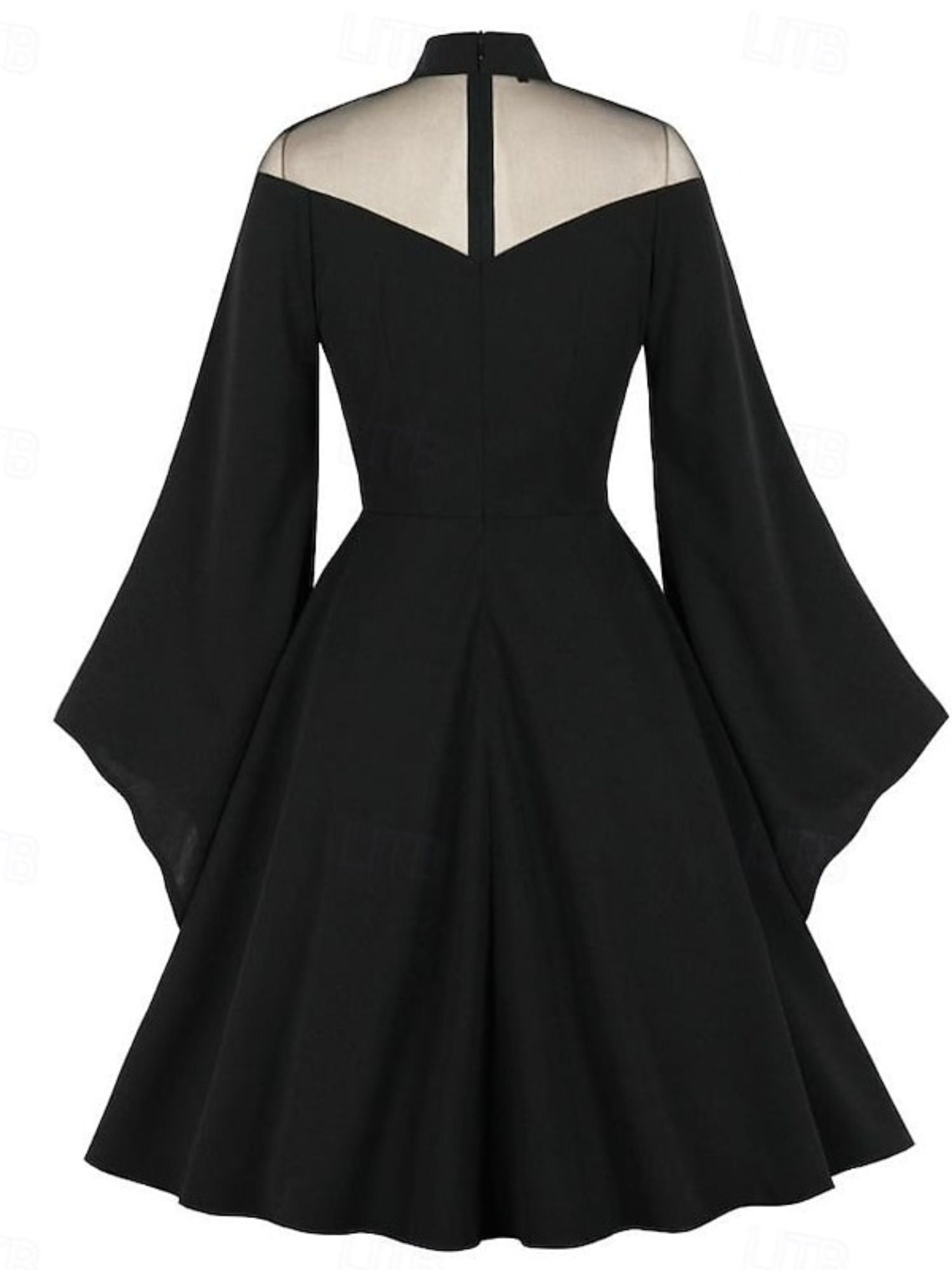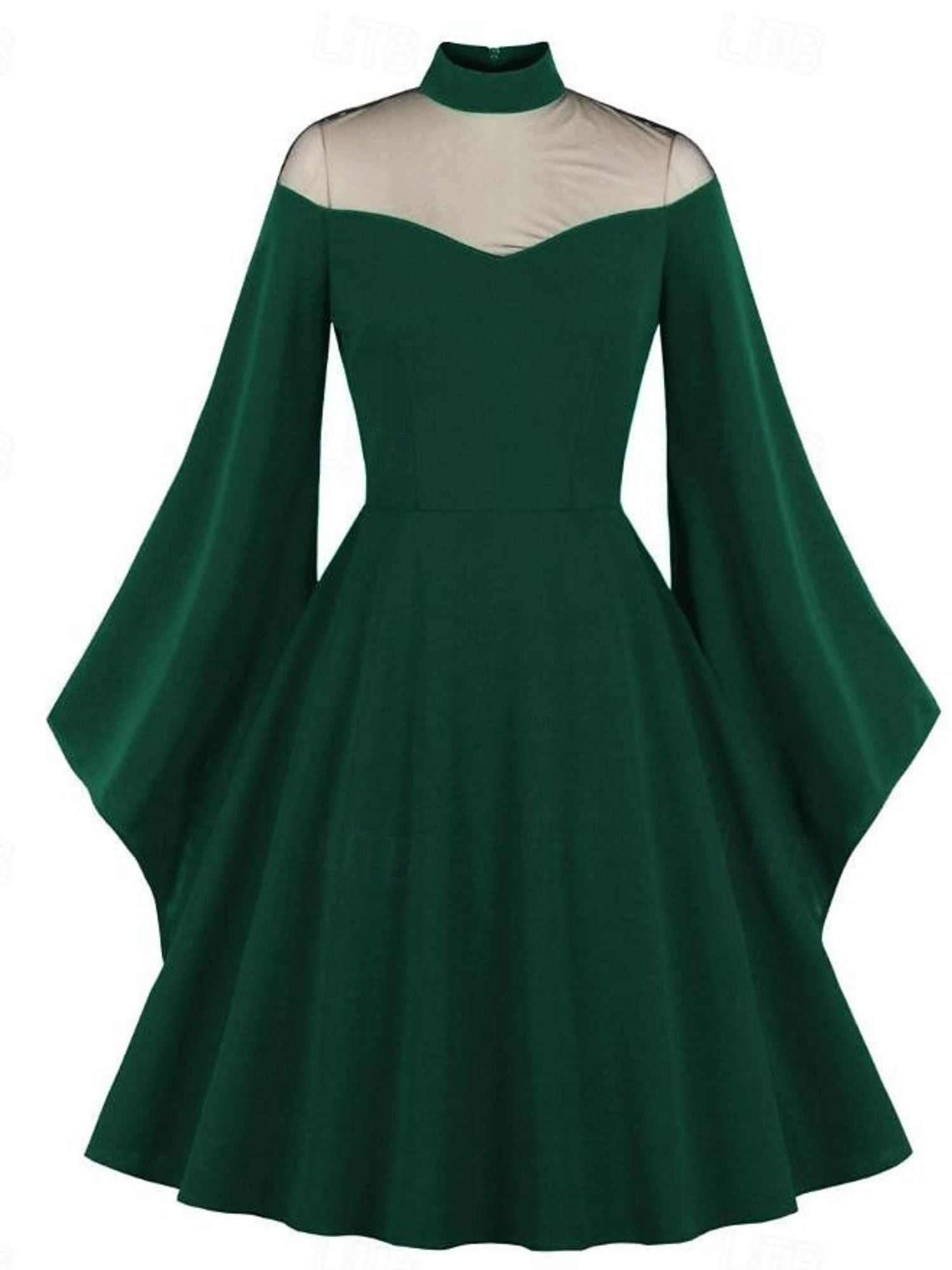 #N6041083W A-Line/Princess Plain High Neck Long Sleeves Knee-Length Vintage Halloween Performance Costumes Dress