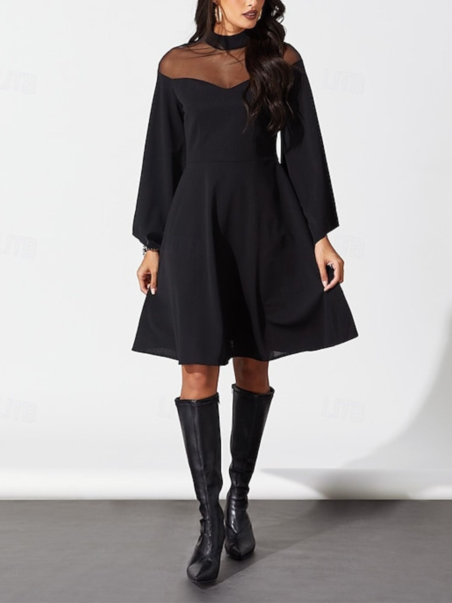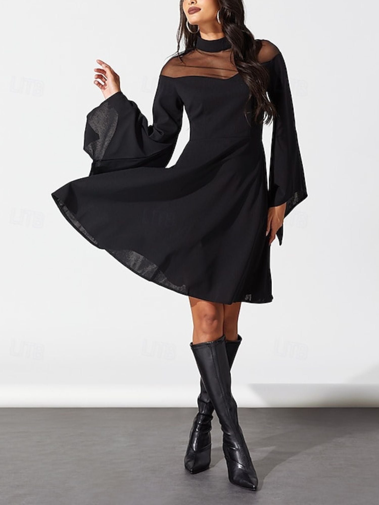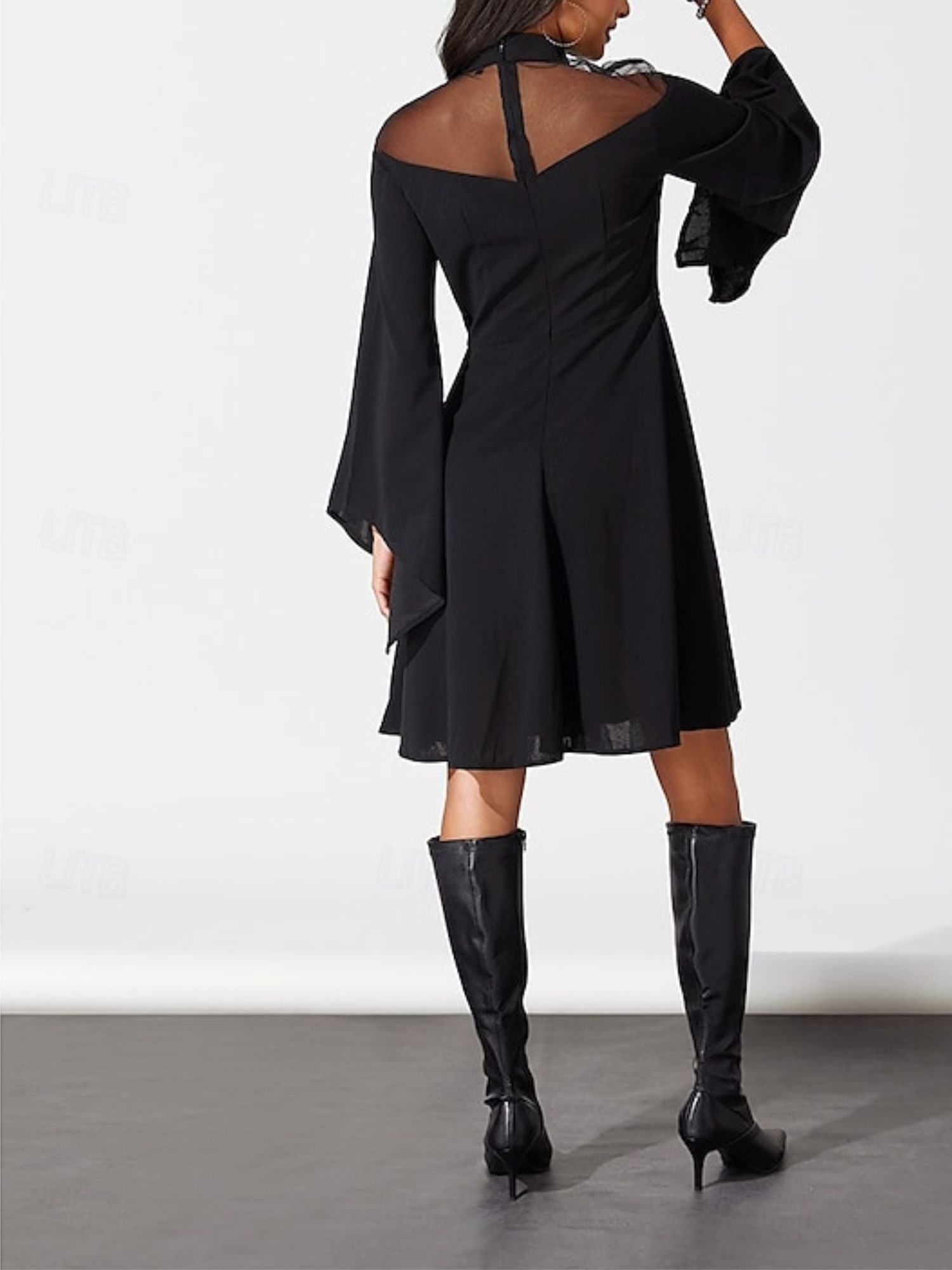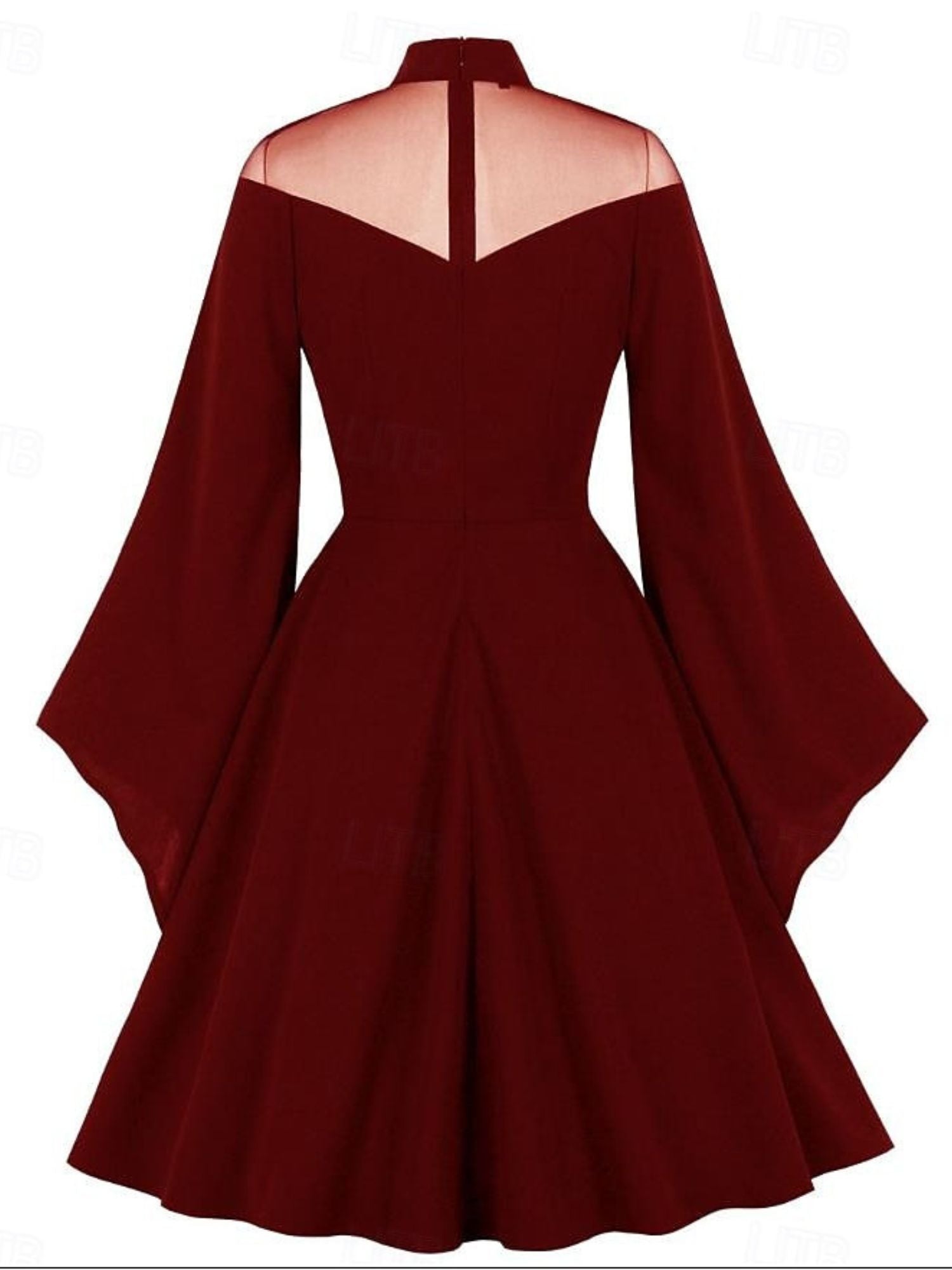 #N6041083W A-Line/Princess Plain High Neck Long Sleeves Knee-Length Vintage Halloween Performance Costumes Dress