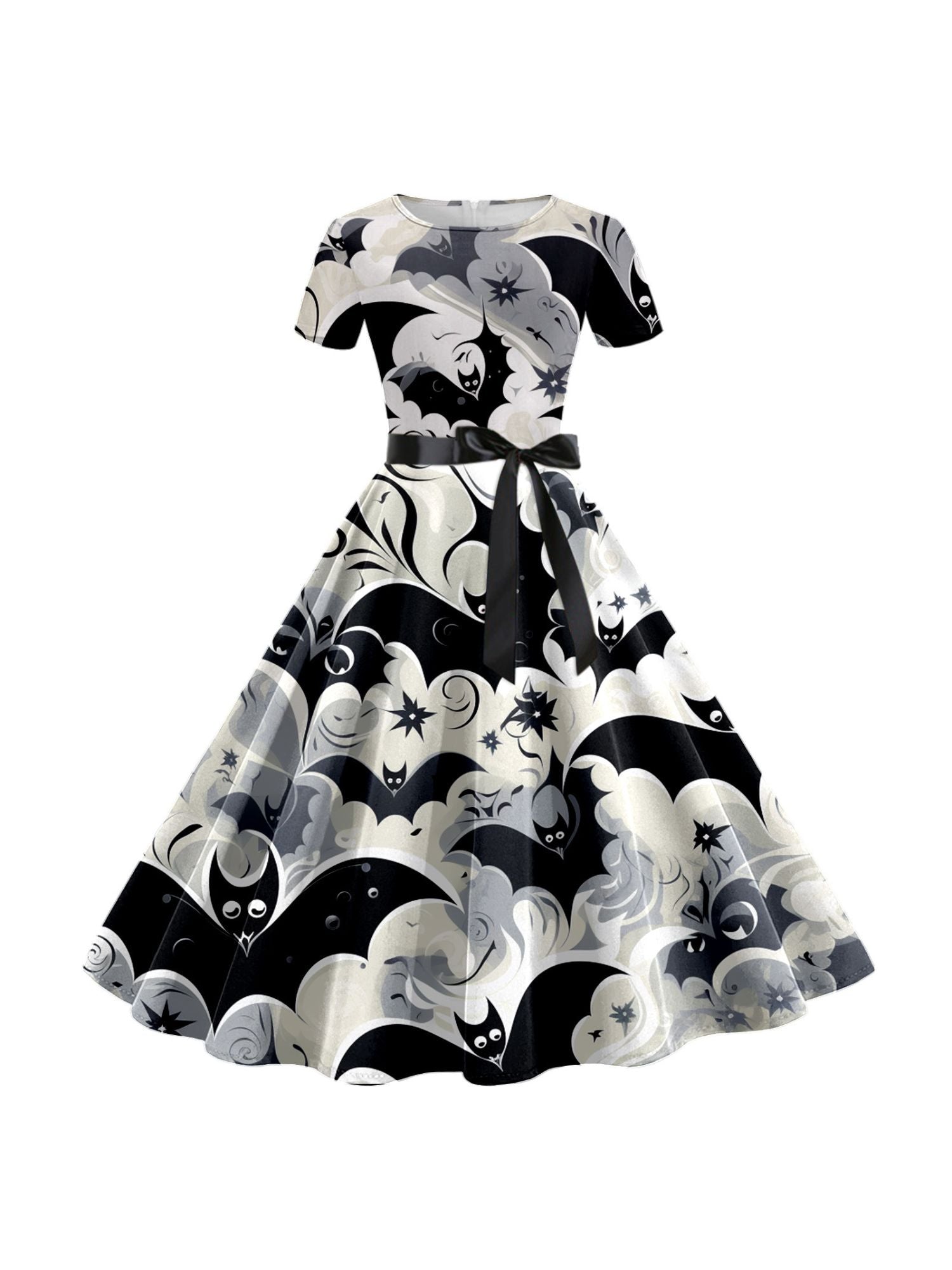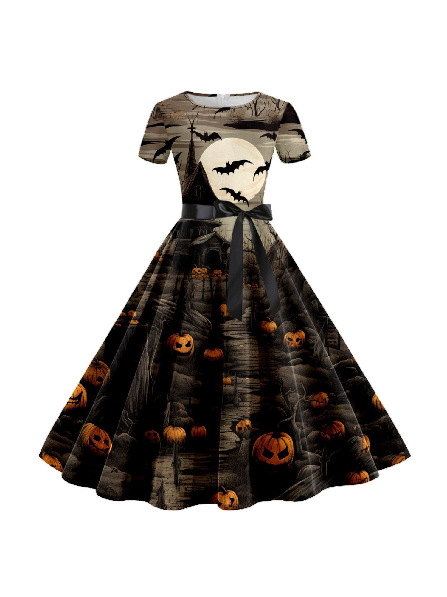 #N6041064W A-Line/Princess Round Neck Short Sleeves Knee Length Halloween Cartoon Printed Performance Costumes Dress