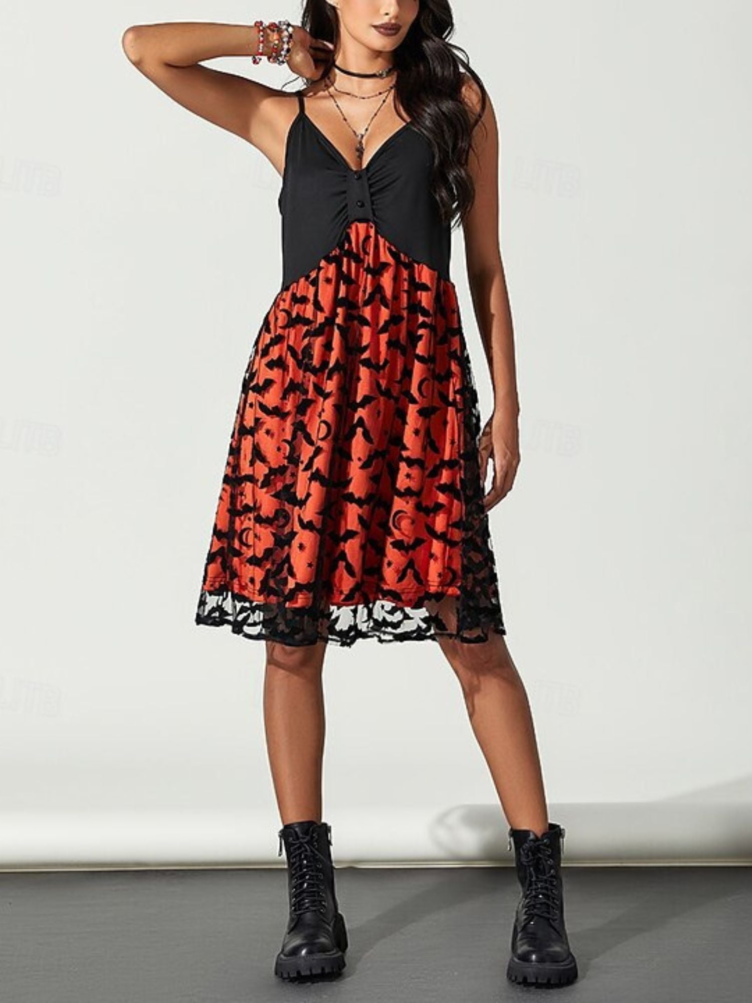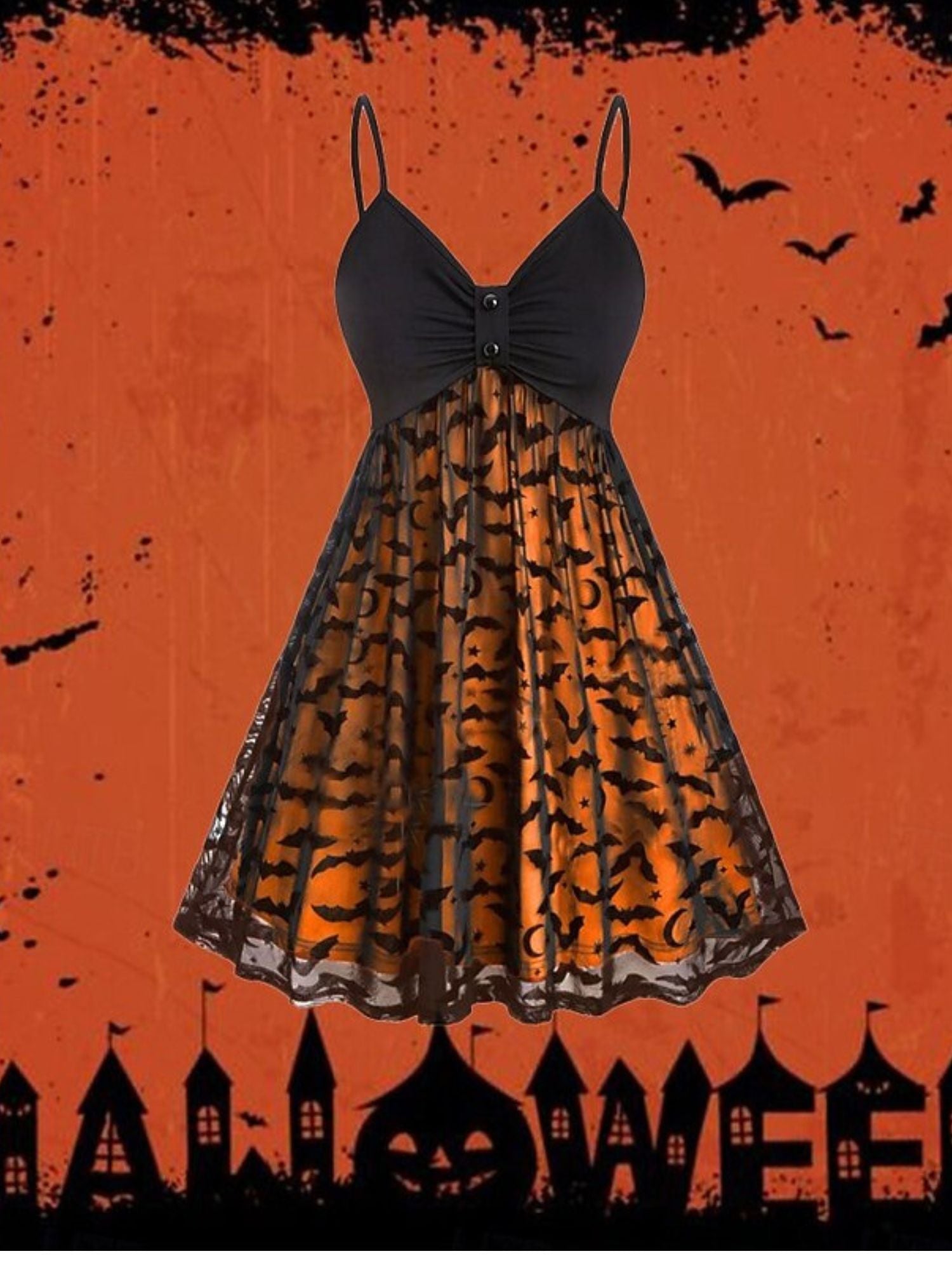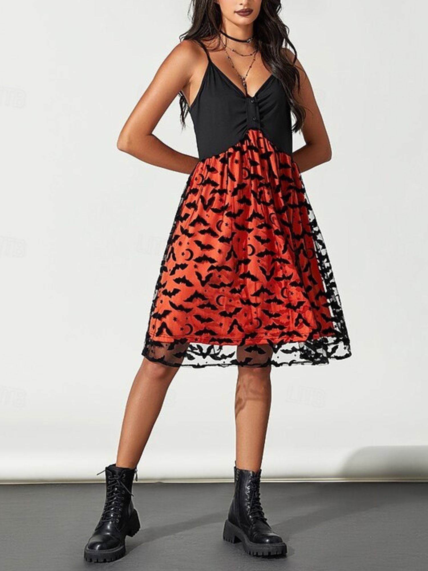 #N6041080W A-Line/Princess Sexy Slip Dress V-Neck Sleeveless Knee-Length Bat Halloween Performance Costumes Dress