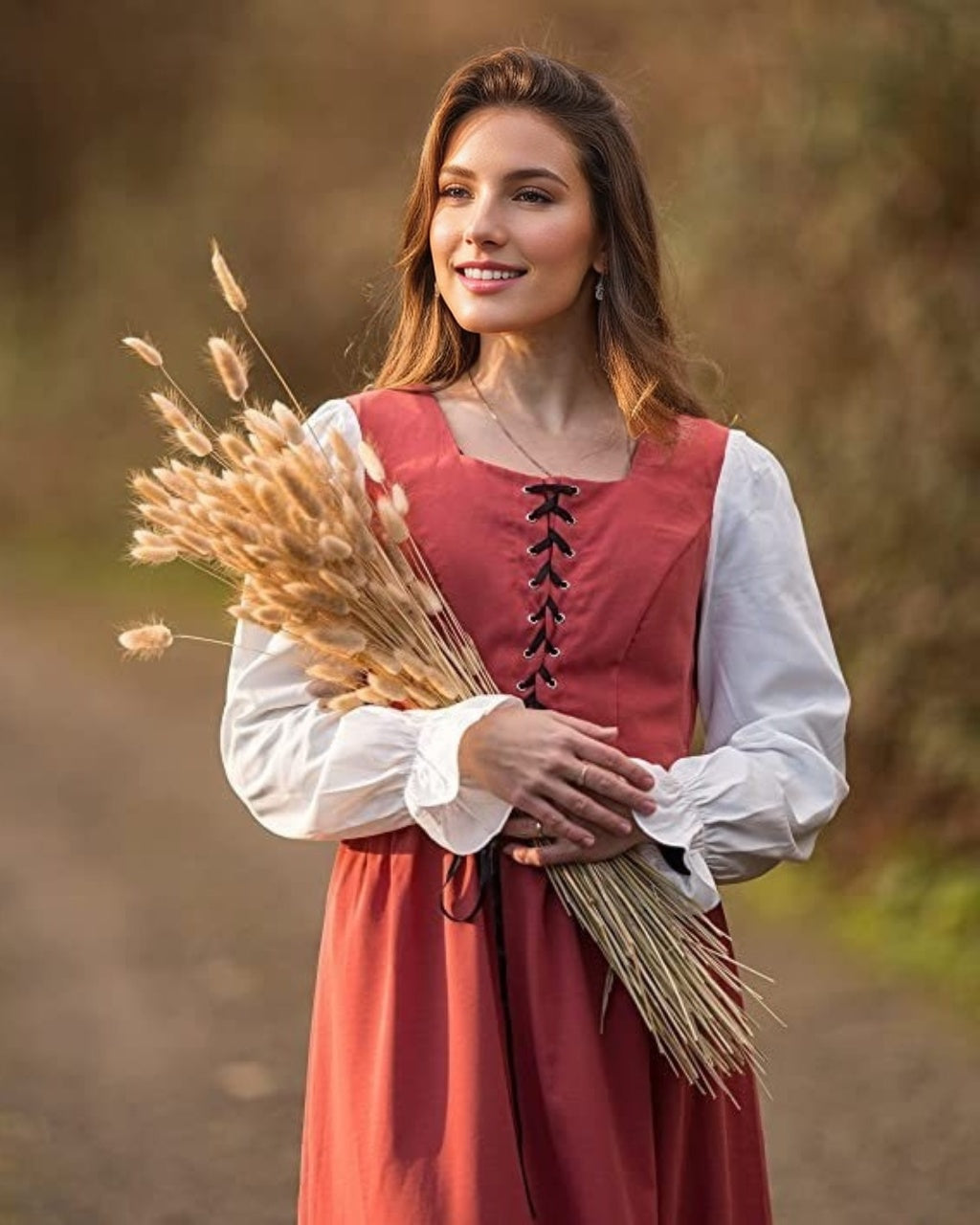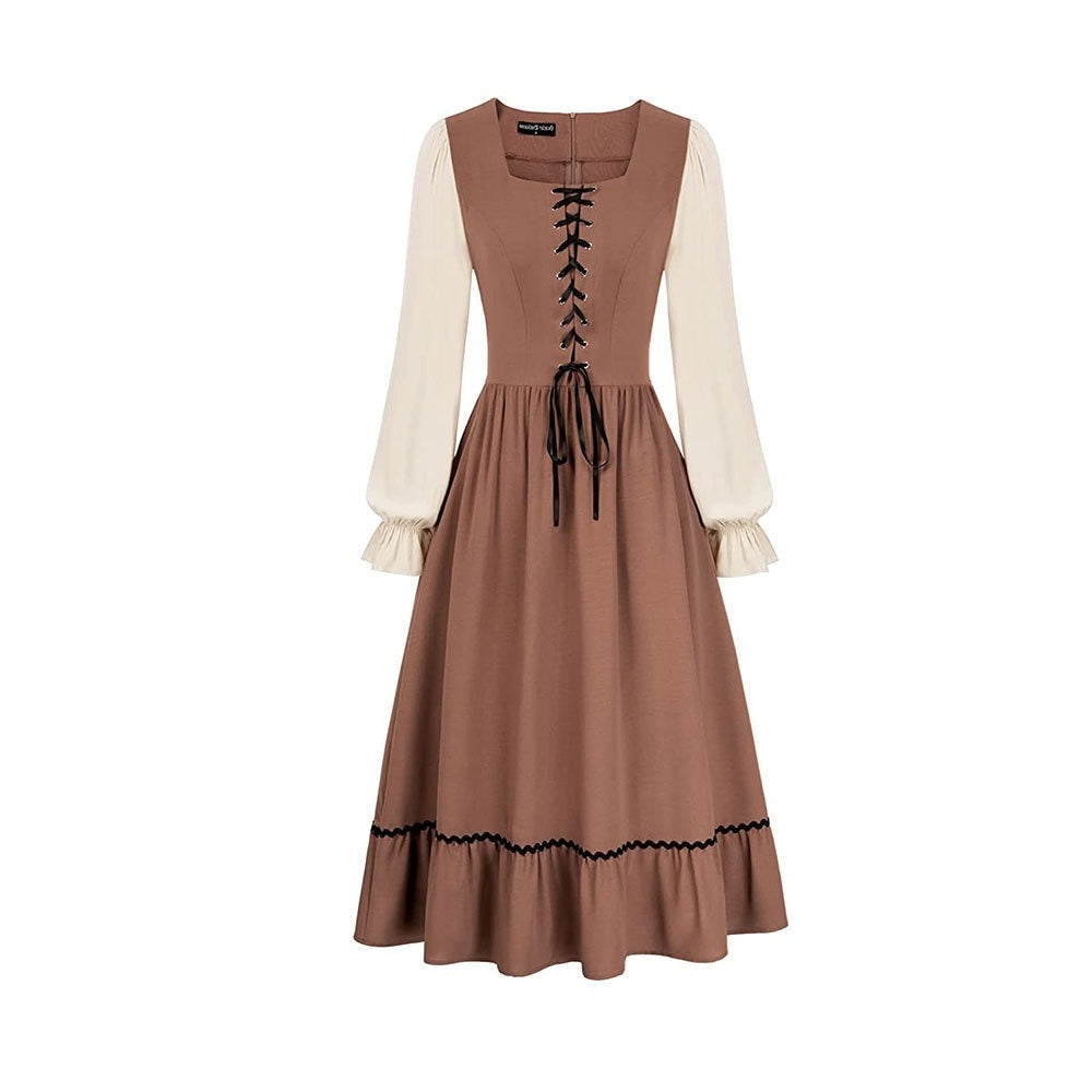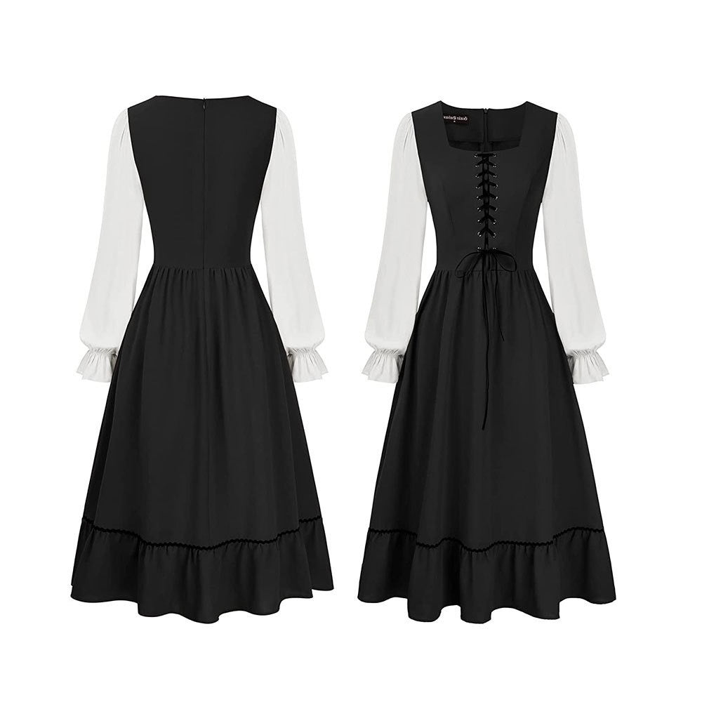 #N6041310W A-Line/Princess Square Neck Long Sleeves Knee-Length Retro Vintage Medieval Renaissance Pirate Masquerade Casual Dress