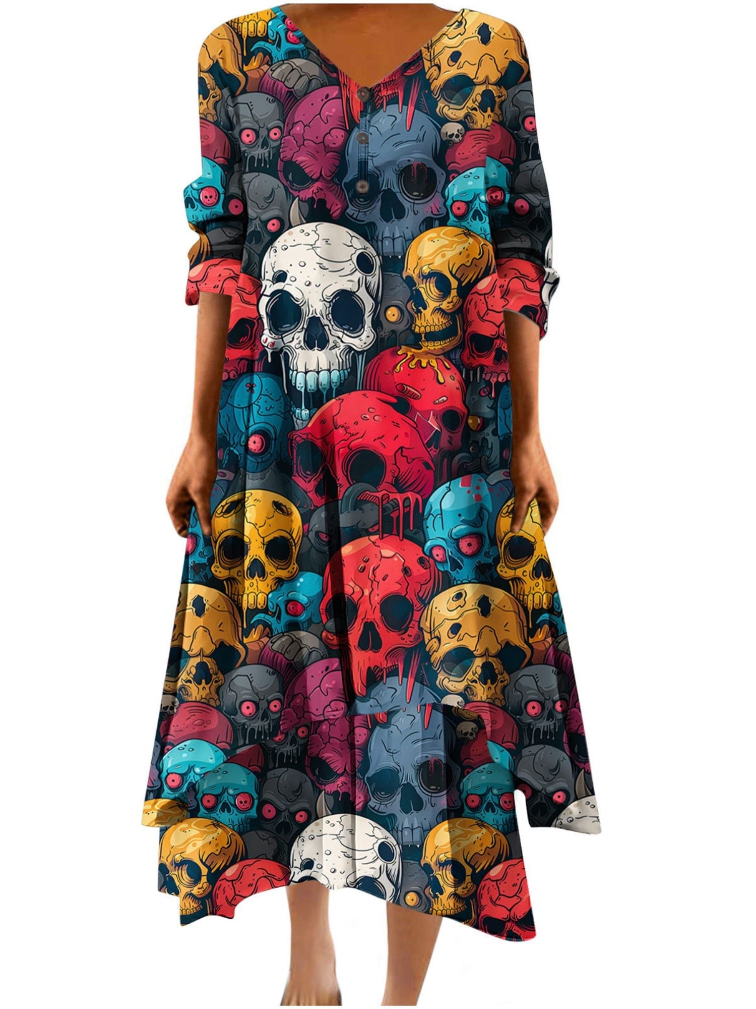 #N6041066W A-Line/Princess V-Neck Half Sleeves Ankle Length Casual Halloween Performance Costumes Dress