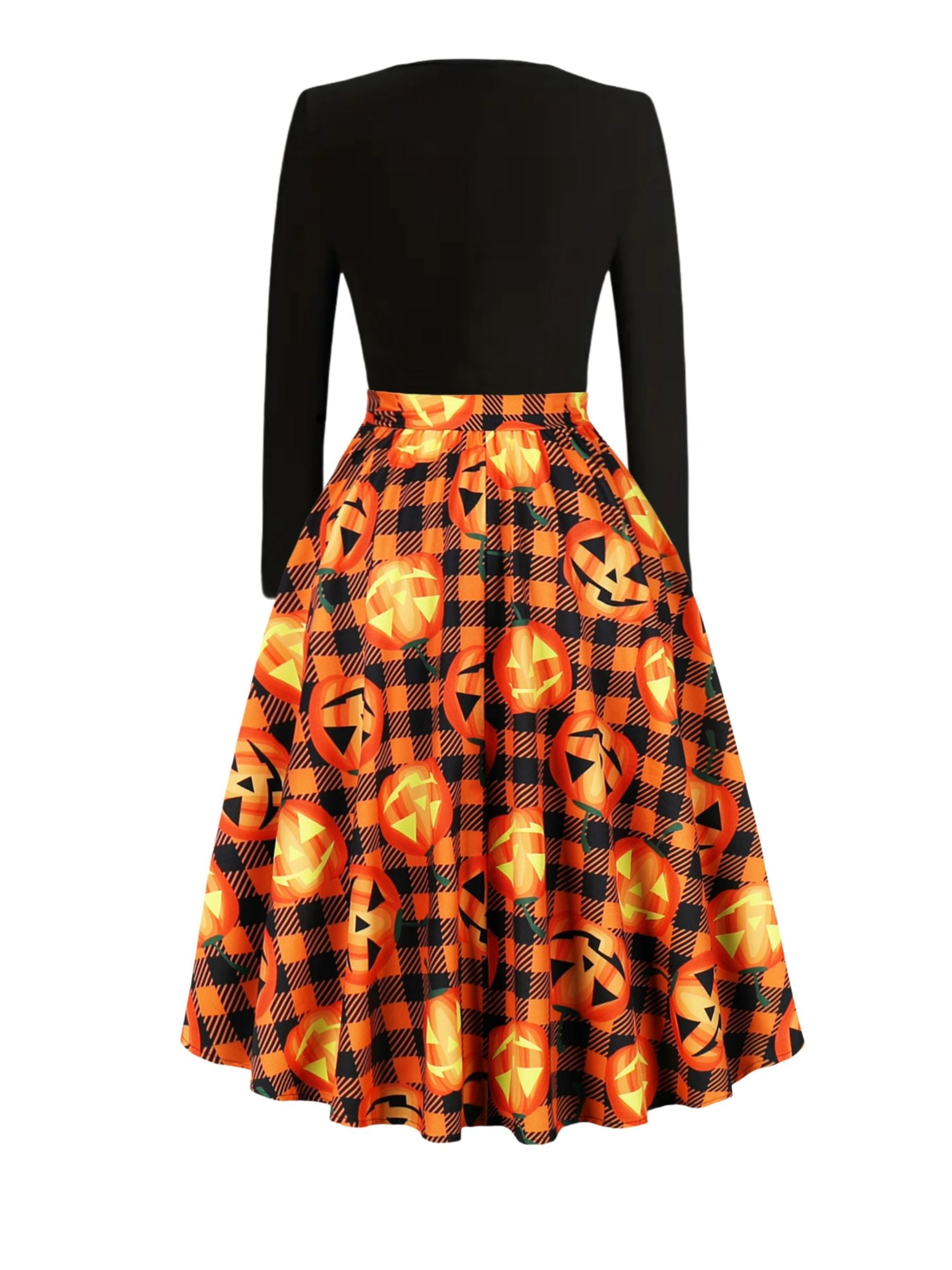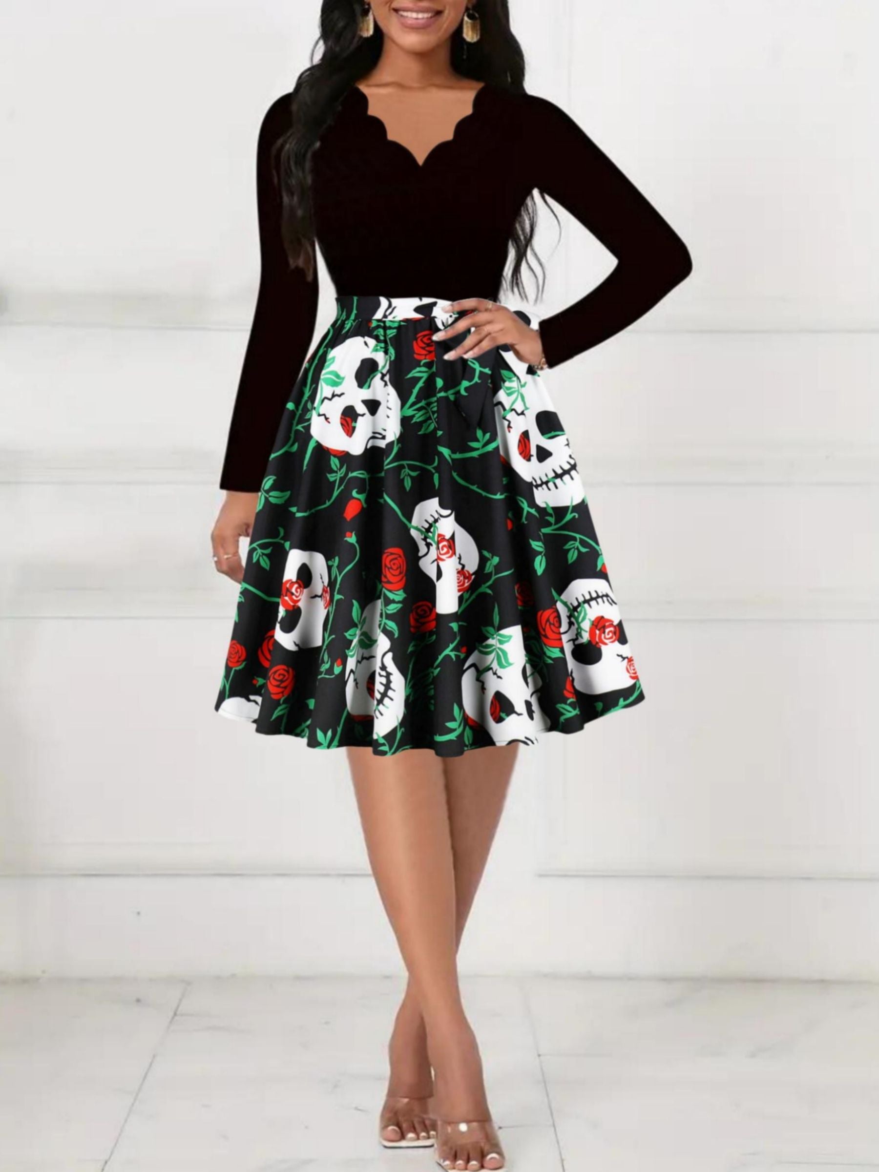 #N6041063W A-Line/Princess V-neck Long Sleeves Knee-Length Prints Halloween Performance Costumes Dress
