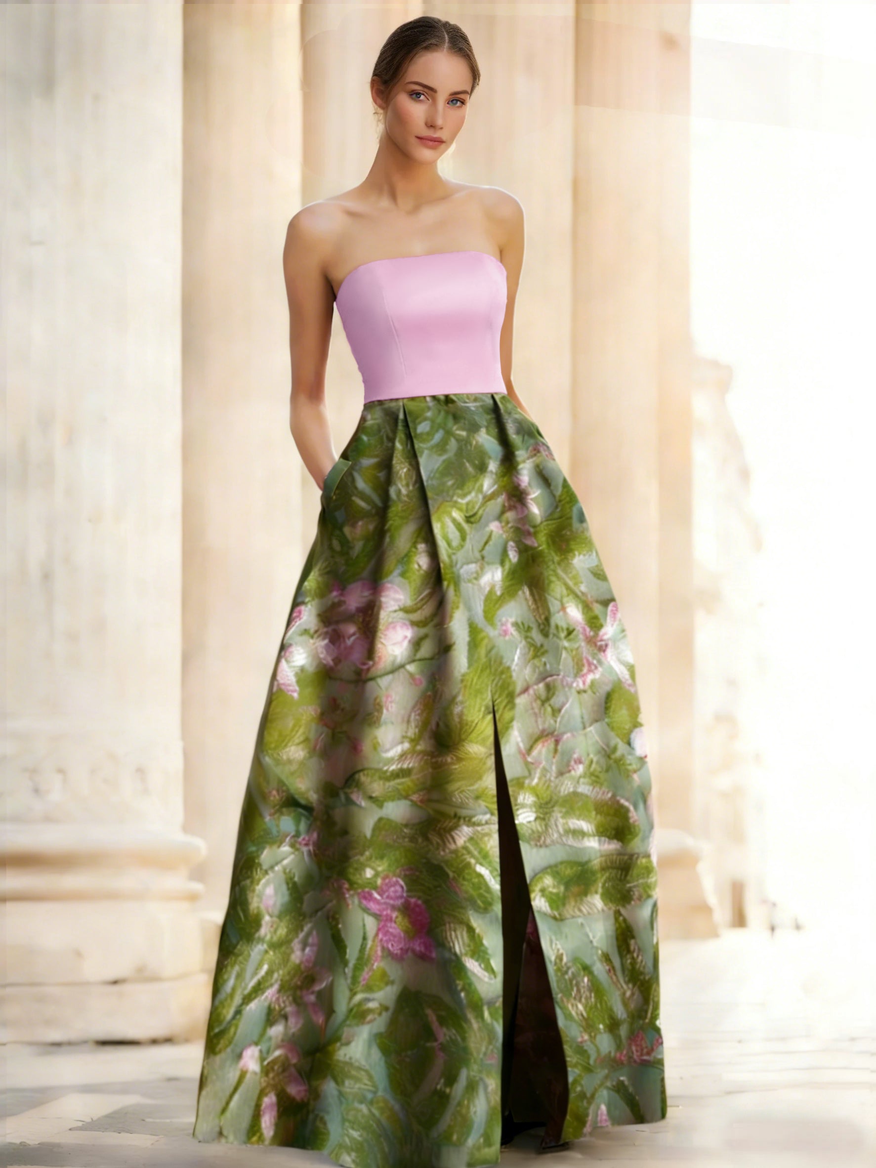 #N363001 A-Line/Princesses Elegant Evening Dress Jacquard Floral Dress Strapless Elegant Dress Floor Length Pockets