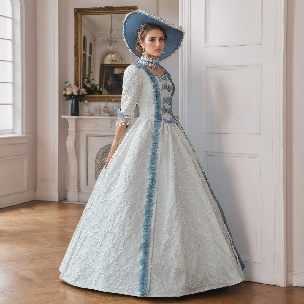 #N6041226W Ball Gown Square Neck Half Sleeves Floor-Length Halloween Carnival Party Evening Masquerade Rococo Victorian Vintage Inspired Dress