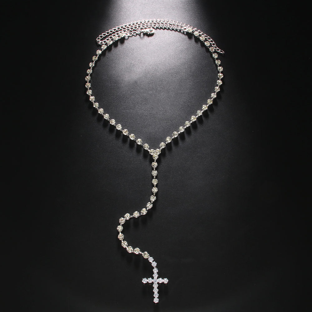 #N1441141W Cool Hip Hop Cross Pendant Rhinestone Long Necklace