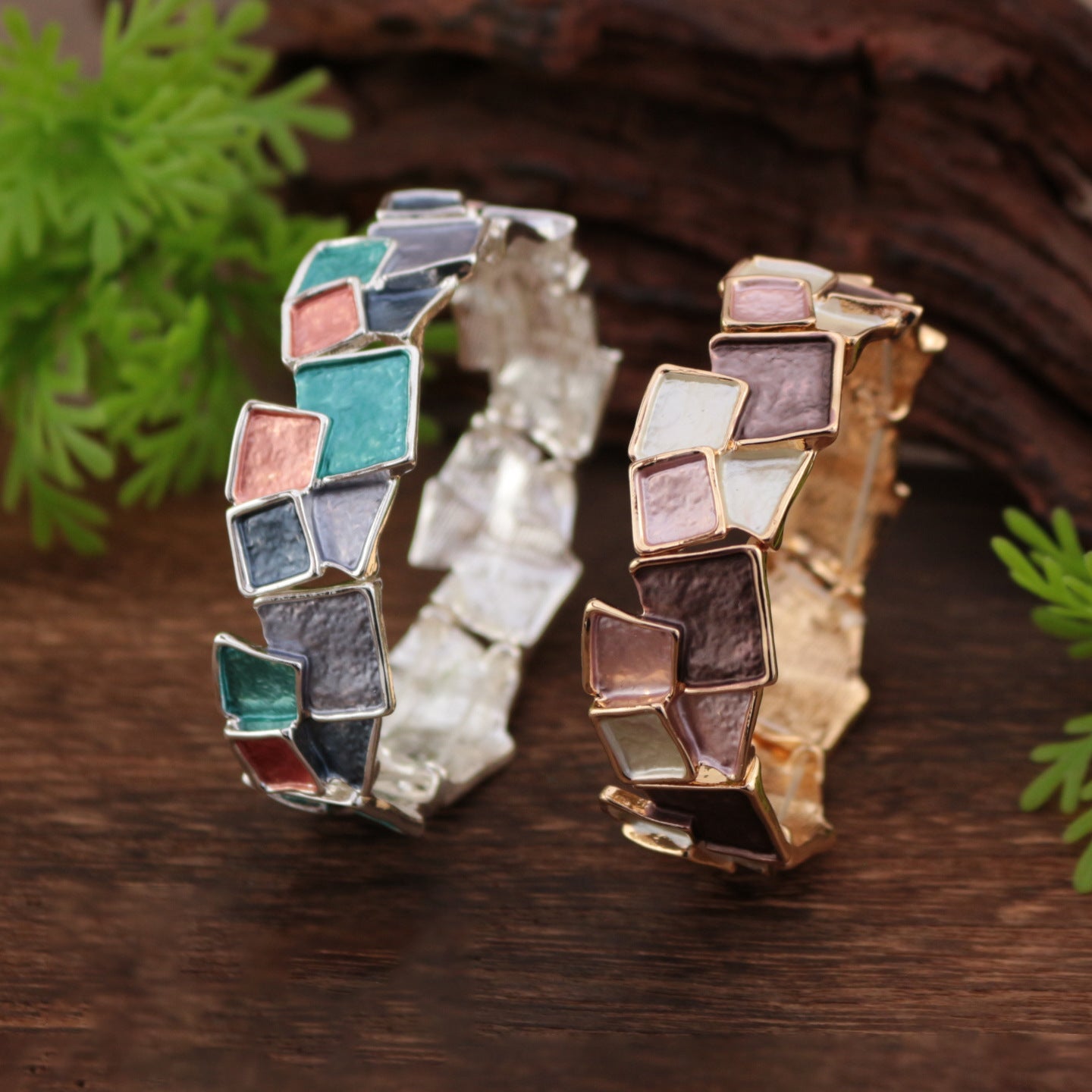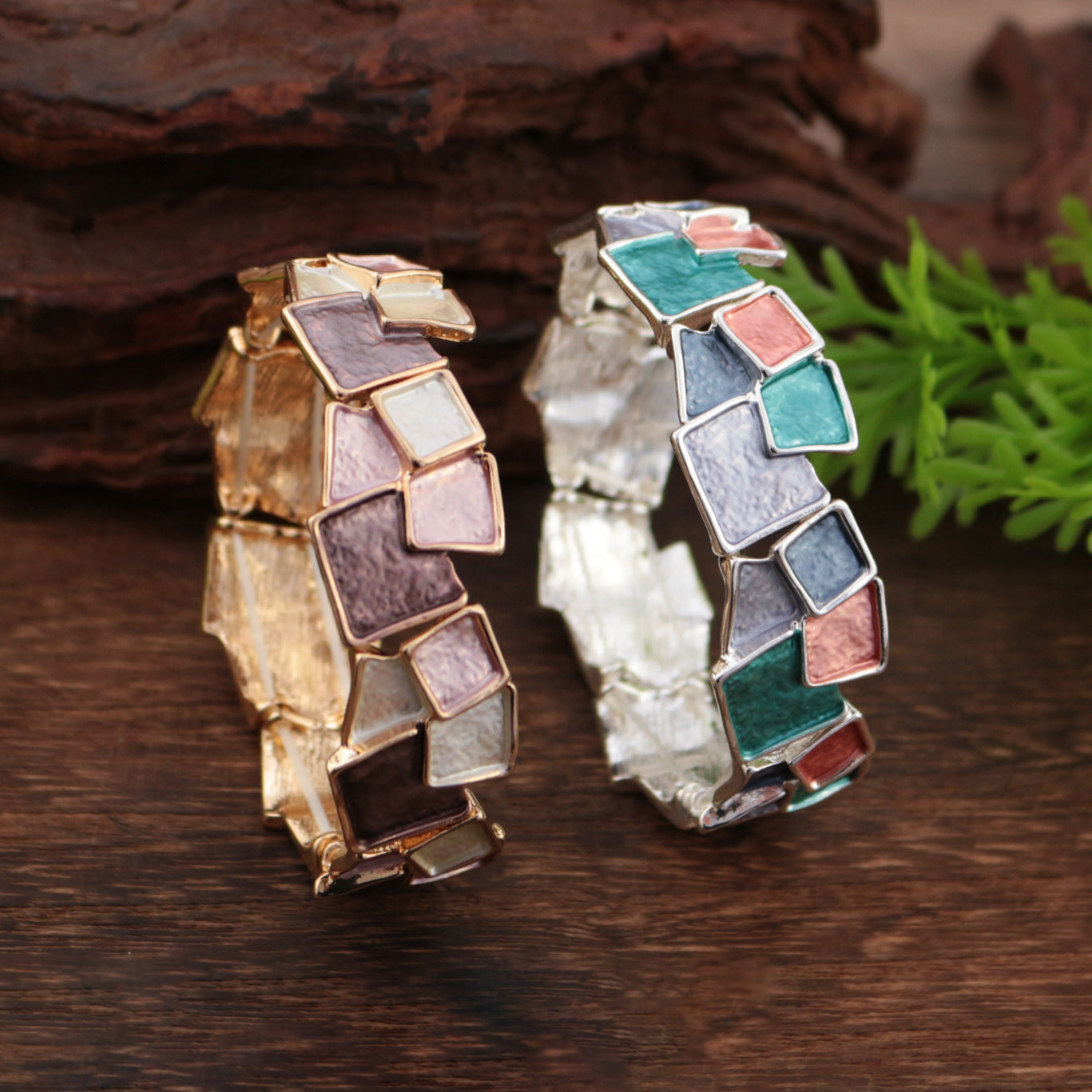 #N2041119W Delicated High-End Enamel Geometrical Square Alloy Stretch Bracelet