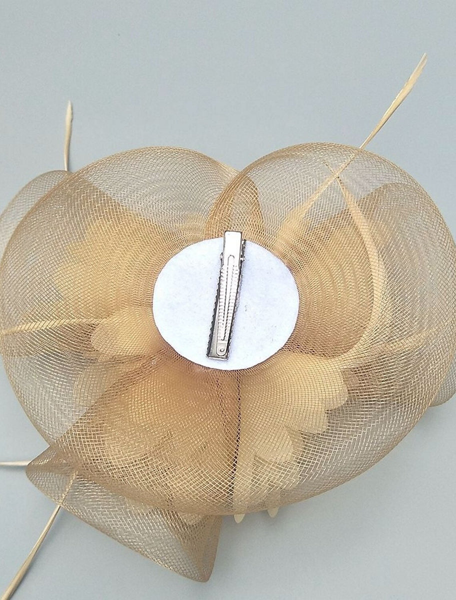 #N1041232W Gold Floral Feather Kentucky Derby Hat Horse Race Retro Fascinators/Headpiece