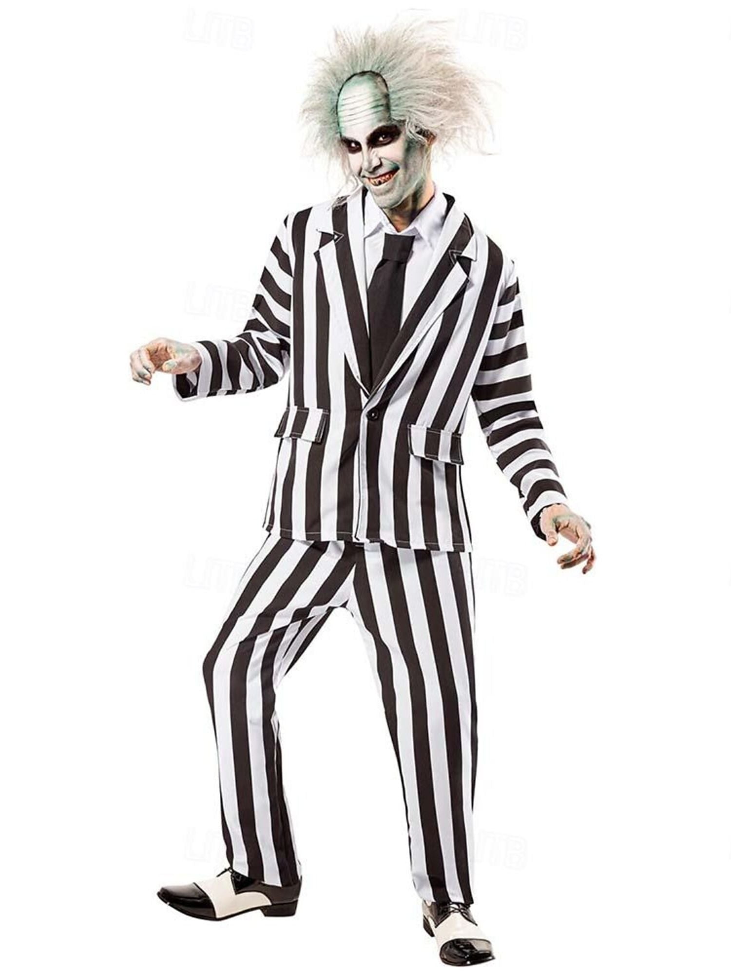 #N6041092W Halloween Classic Black and White Striped Men's Suits Horror Movie Cosplay Costume