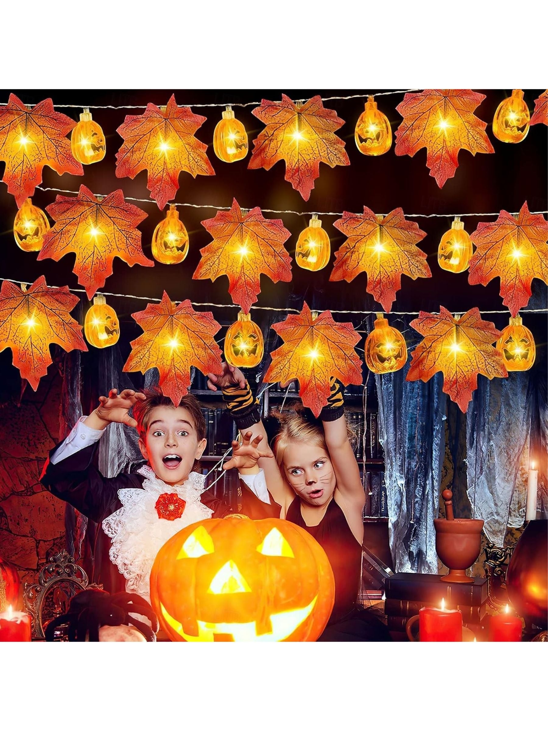 #N6041151 Halloween Maple Leaf Pumpkin String Decoration Lights Costume Props