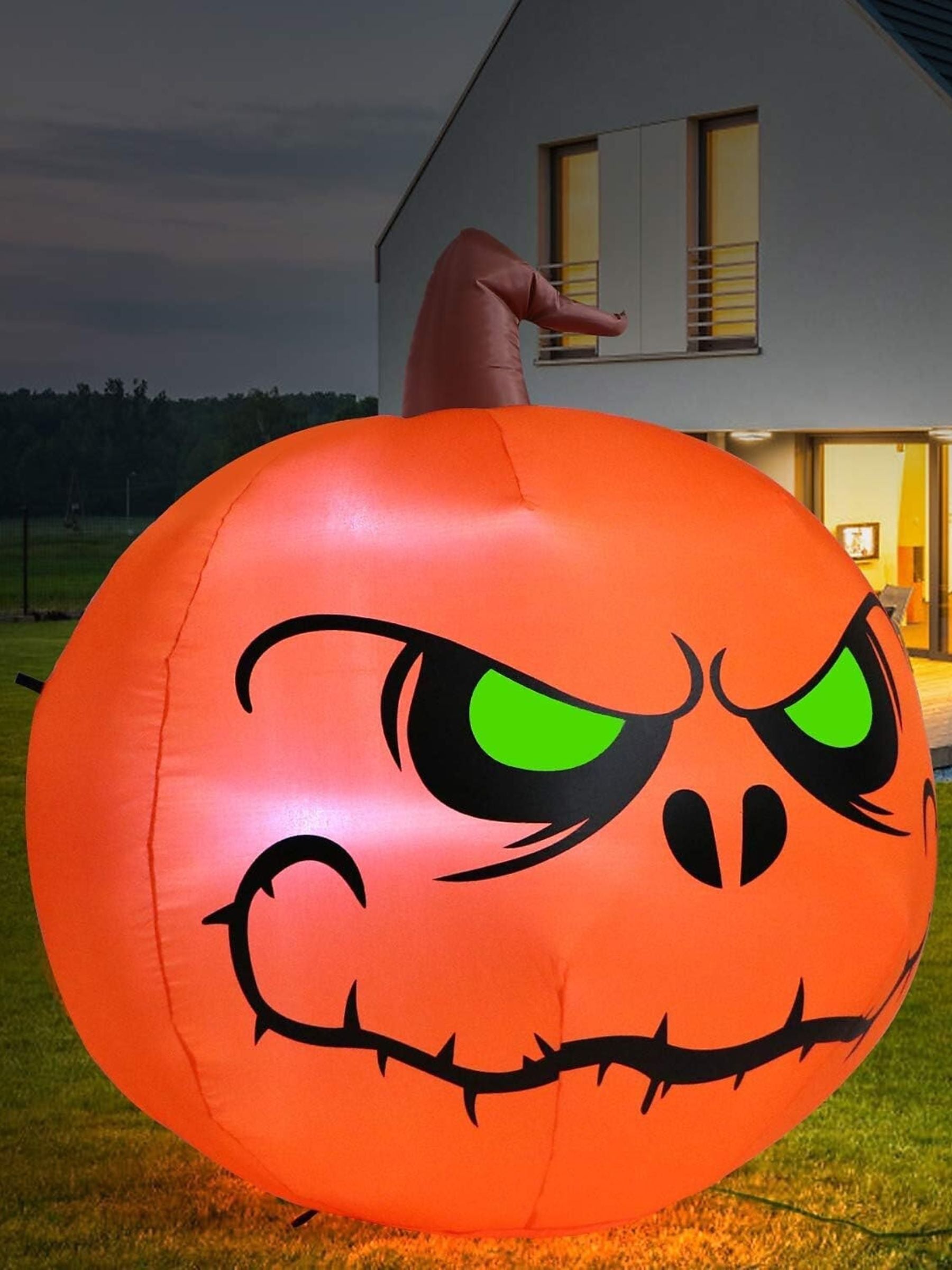 #N6041185 Halloween Outdoor Orange Inflatable Witch Pumpkin Light Decoration Props