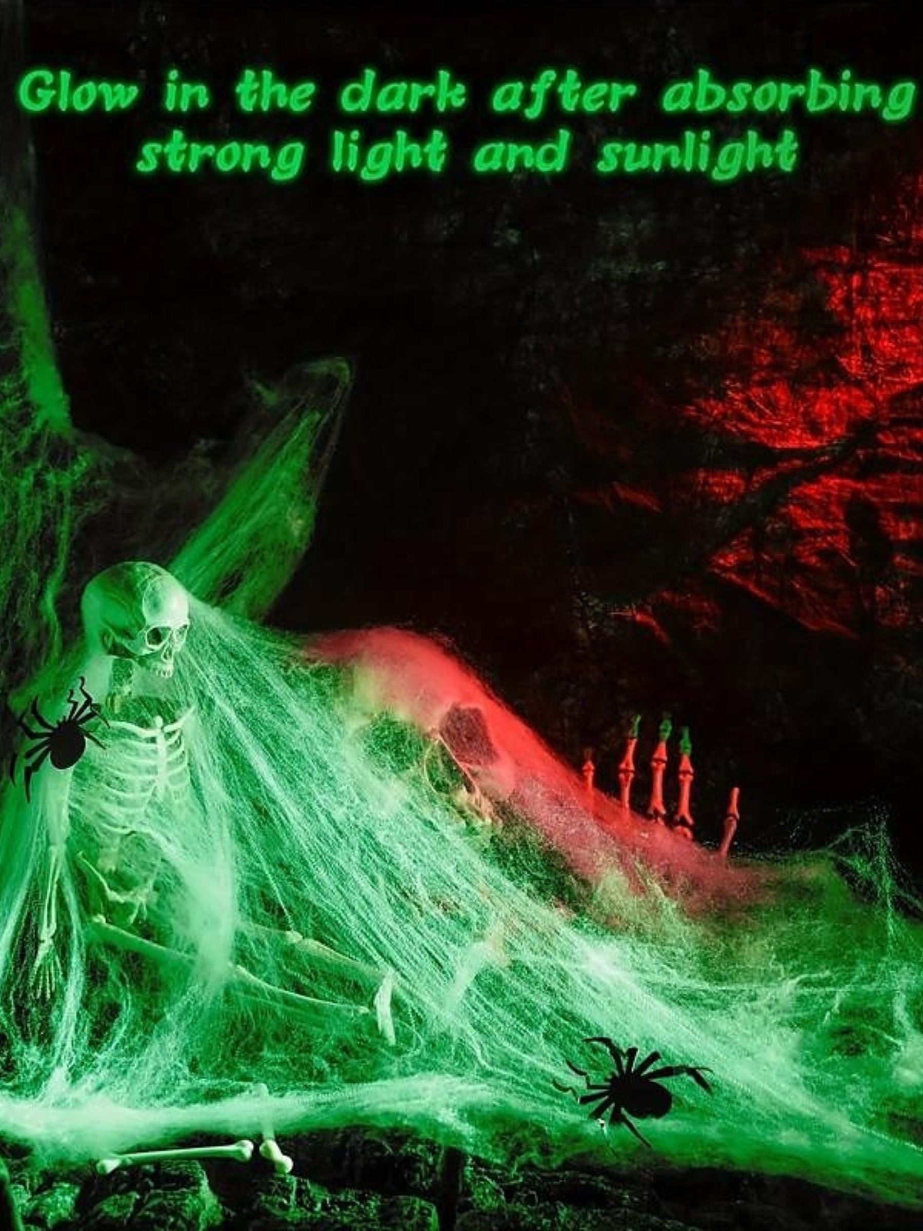 #N6041179 Halloween White Glow in the Dark Stretch Spider Webs Masquerade Party Decoration Props