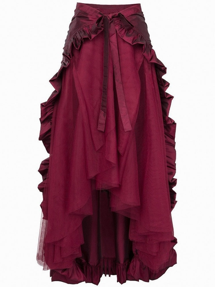 #N6041292W Retro Vintage Medieval Renaissance Pirate Elven Flounced Asymmetric Hem Plain Women's Celtic Fantasy Masquerade Event / Party Skirts